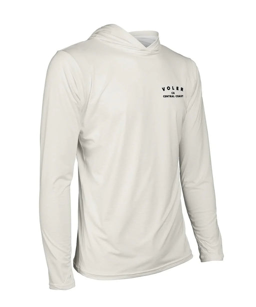 VolerA UPF 35 hooded, long sleeve sun shirt, built from stretchy, soft, quick drying mesh, sourced and made in good conscience.
