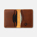 Bugs Moran is a minimalist leather wallet that can be carried in your front or back pockets. To keep a slim profile, Bugs was designed without a bill slot but it can hold folded cash in the larger two card slots.
