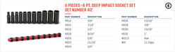 Wright Tool 6 Point Deep Impact Socket Set 11 Piece 1/2" Drive SAE 412