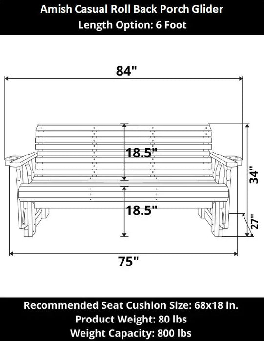Amish Casual Heavy Duty Roll Back 6 Foot Treated Porch Glider