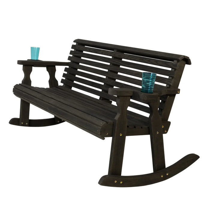 Amish Casual Roll Back Wooden Outdoor Double Rocker Bench