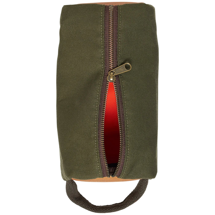 Worn to perfection, the Ball and Buck Pine Duck Dopp Kit is ideal whether you are leaving for a weekend hunting trip or heading to the gym. Accented with hand stamped Signature Leather and a webbed handle, this carryall will give you endless wear and tear through all of your adventures, and get you excited about packing.
