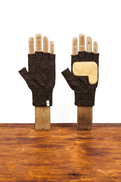 Rust Melange Fingerless Glove with Natural Deerskin Palm