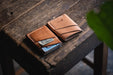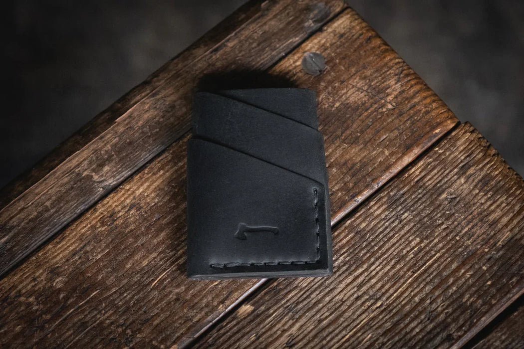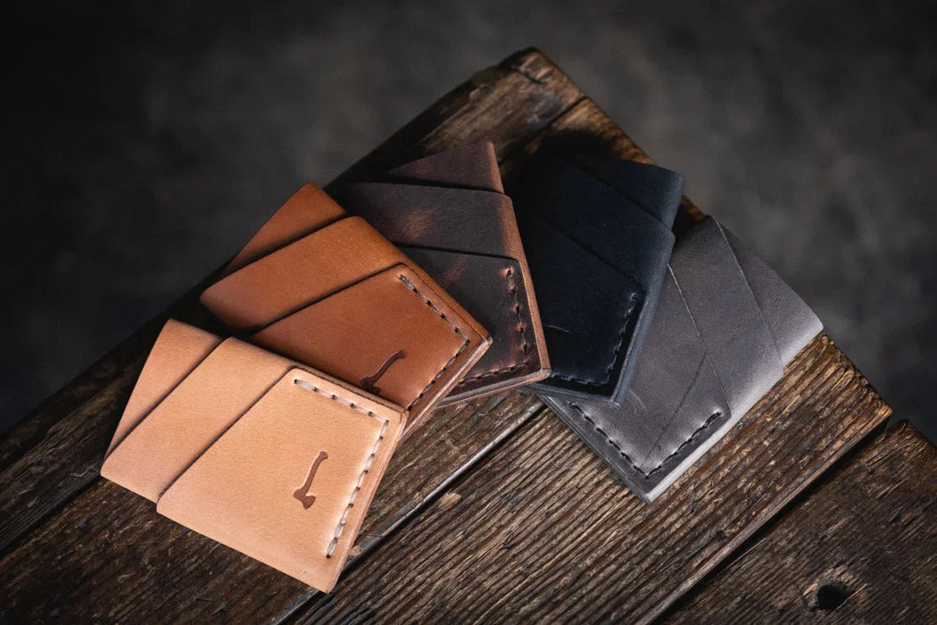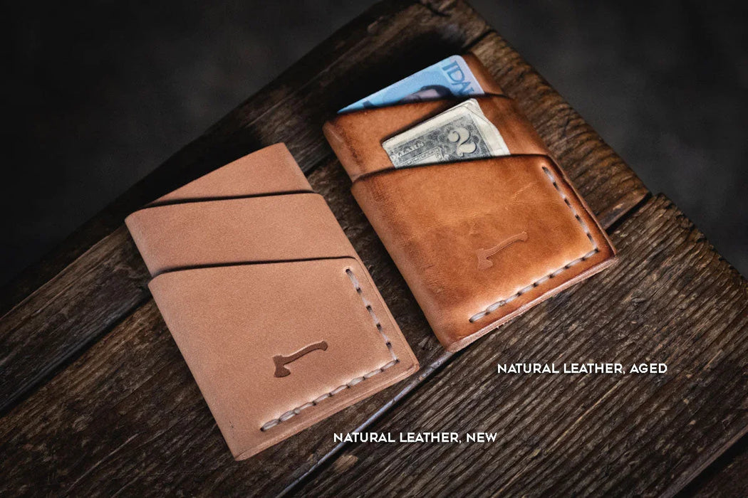 This original Craft and Lore design uses a single piece of leather wrapped around itself, with only the needed stitching, to complete a beautiful minimalist design. Pack your main cards in an outside pocket, your cash in the short pocket, and the lesser used cards inside the center port. The Port Wallet fits comfortably in the front or rear pant pockets as well as in the palm of your hand.