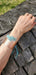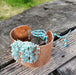 Discover the bold statement of our super wide 41mm or 1 5/8 inches Wide Copper Turquoise Amazonite Leather Dangle Dangle Hercules Cuffs. Perfect for the free-spirited and fashion-forward woman, these cuffs feature a stunning 18-gauge, -wide, hammered or Victorian flower embossed copper cuff with hundreds of individual, hand-sterling silver wire-wrapped amazonite stone dangles. The wider hammered sparkly wide cuff is adorned with braided turquoise leather string dangles which each holds a combination of beads. Let your unique style shine with these one-of-a-kind BOHO style pieces.